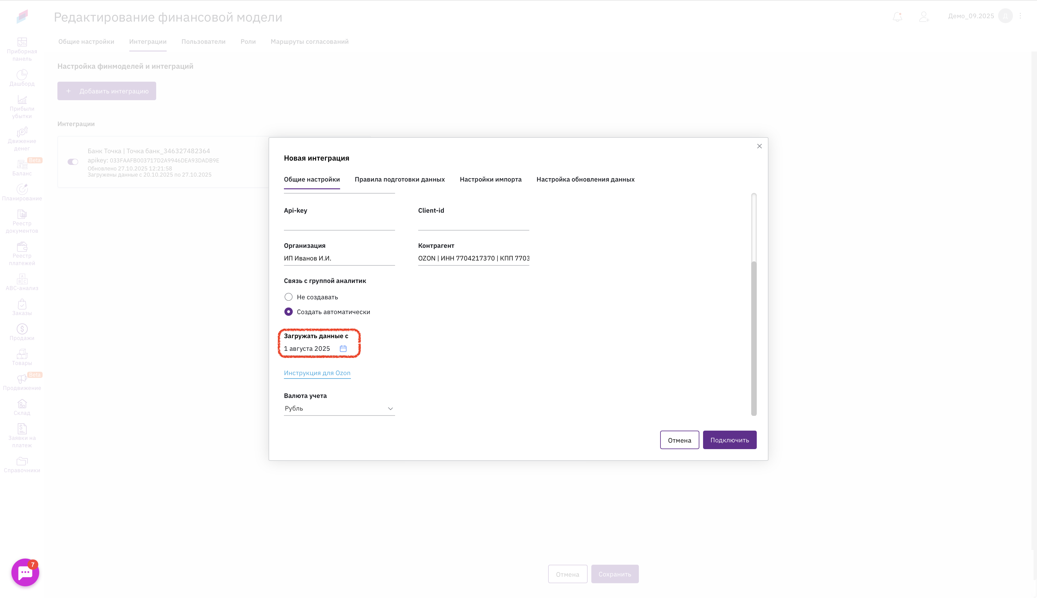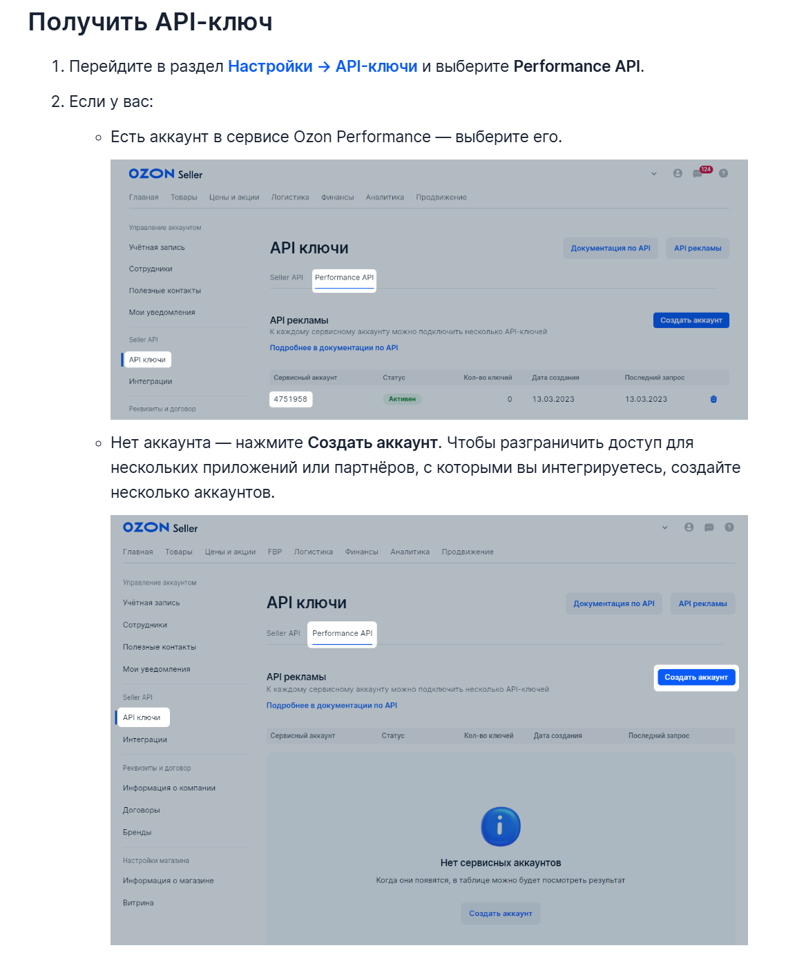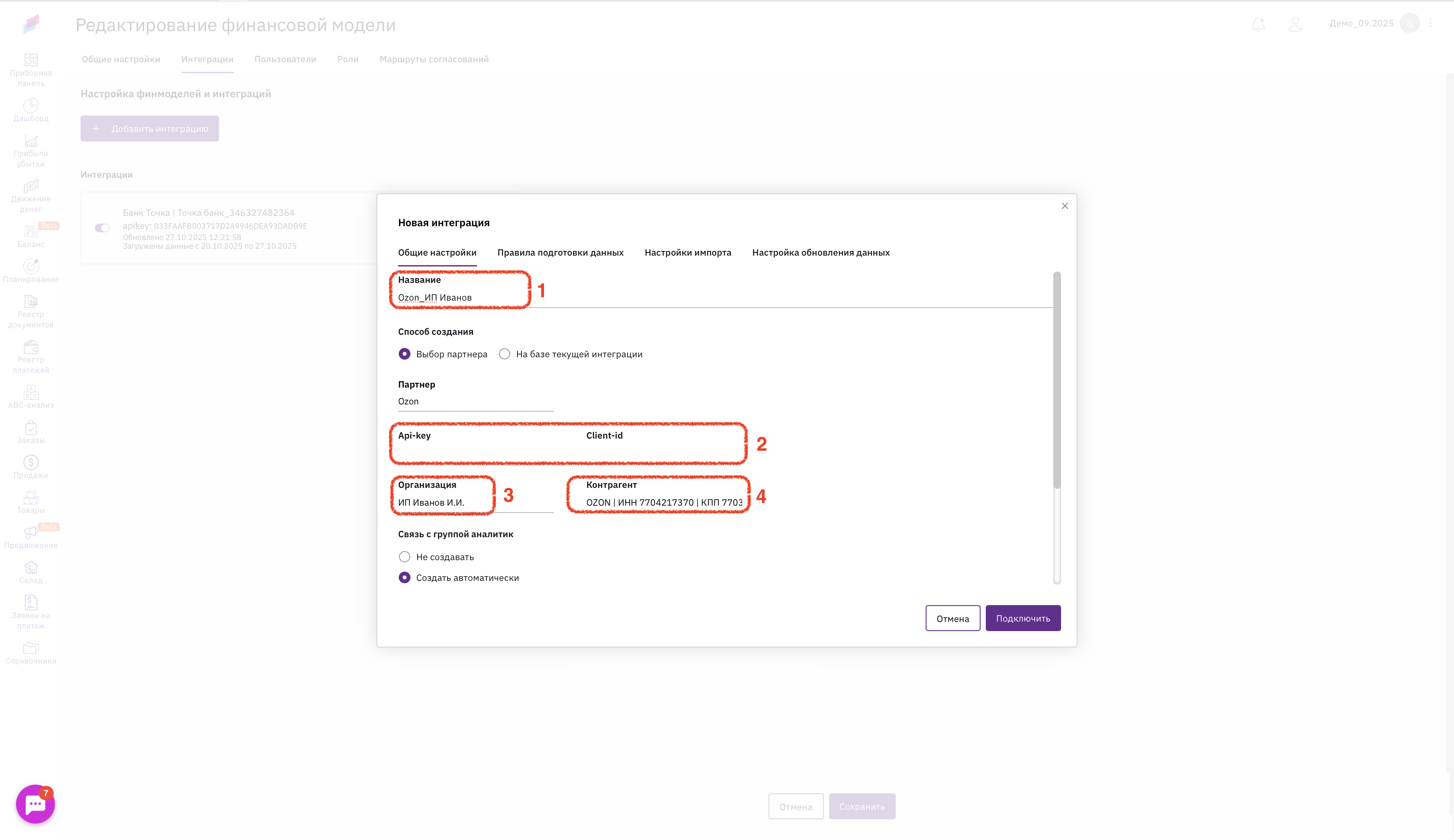 Создание интеграции Ozon в сервисе "Money Sellers"