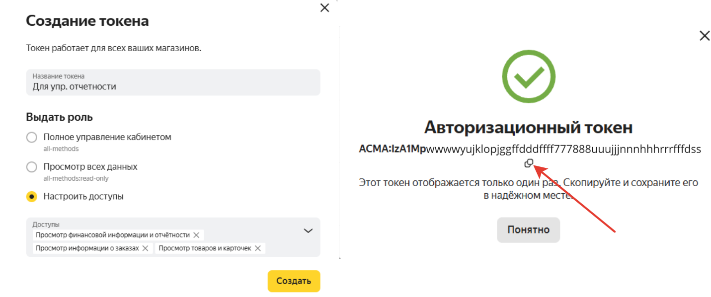 2. Вставьте сгенерированный ранее API ключ Яндекс Маркет