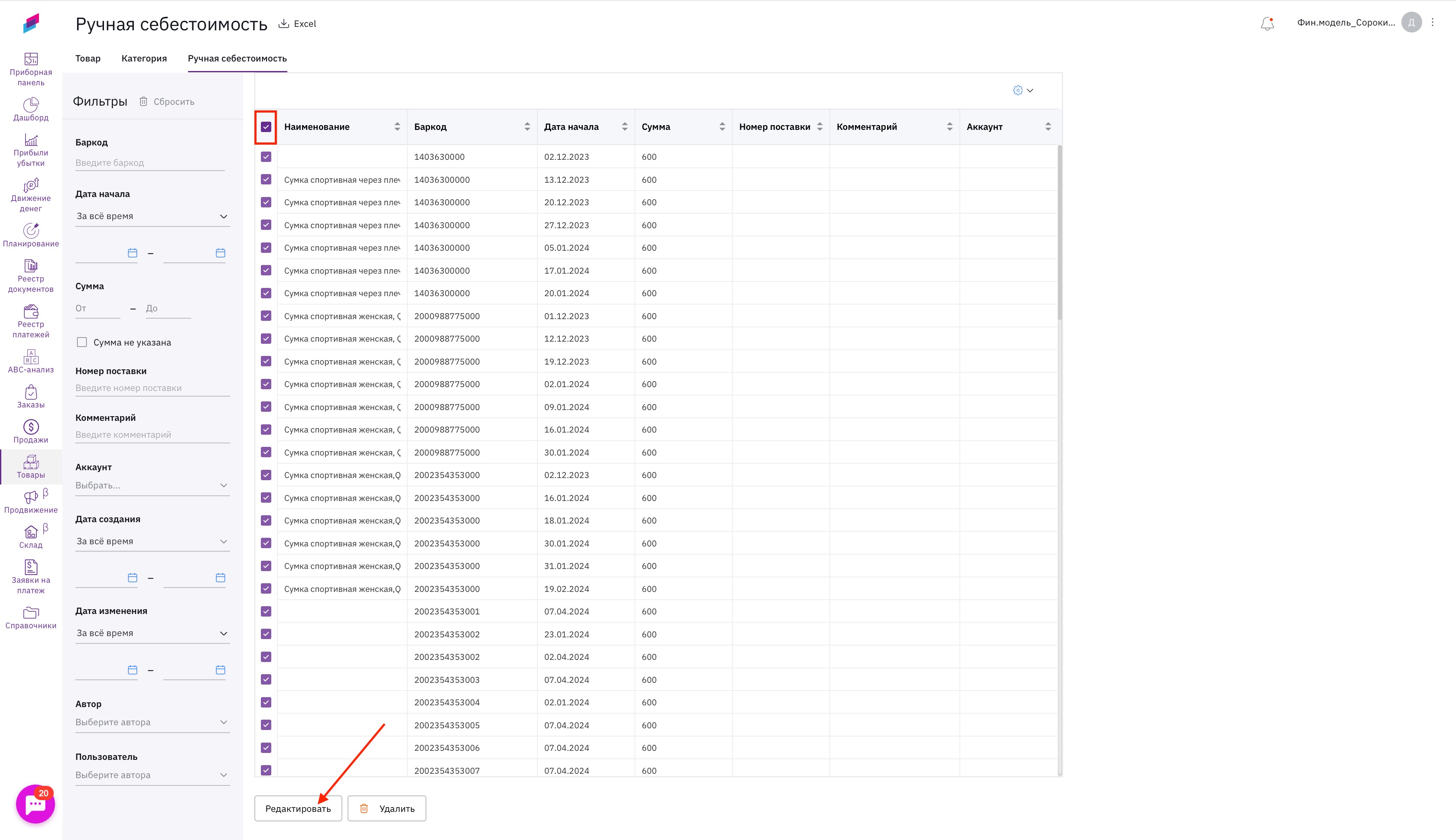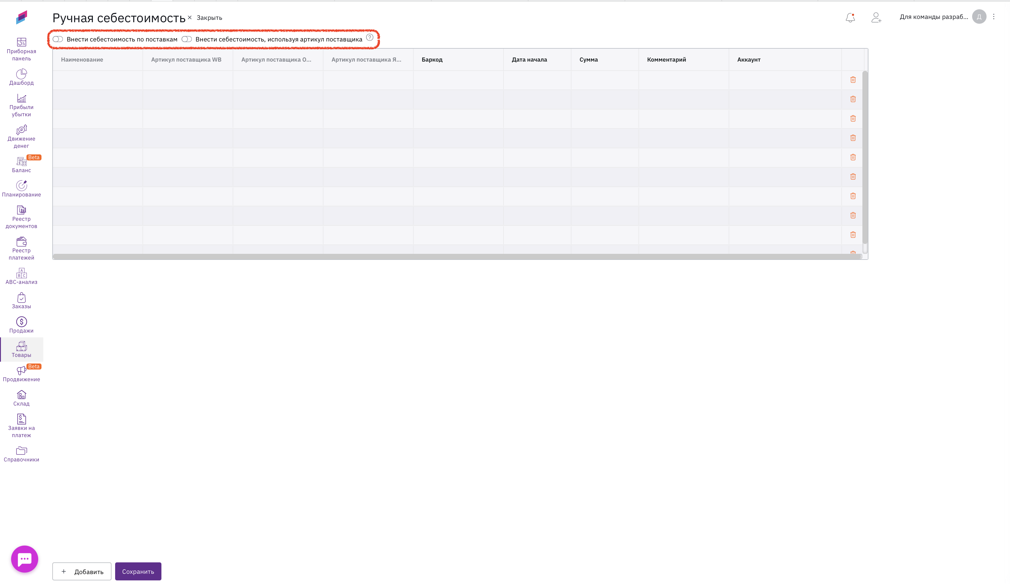 📦По поставкам себестоимость будет формировать с их номерами, необходимо регулярно проверять реестр ручной себестоимости на наличие пустых строк с суммой, так как когда в отчетах появляется новый номер поставки, система сразу просит, чтобы вы заполнили сумму