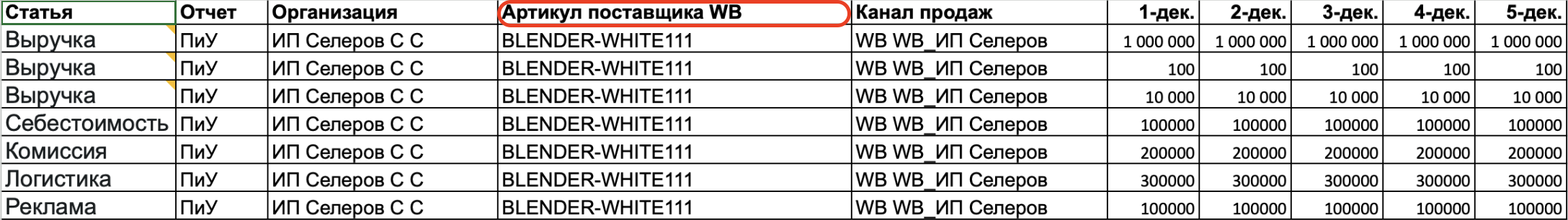 Если по Артикулу поставщика WB - называем столбец Артикул поставщика WB